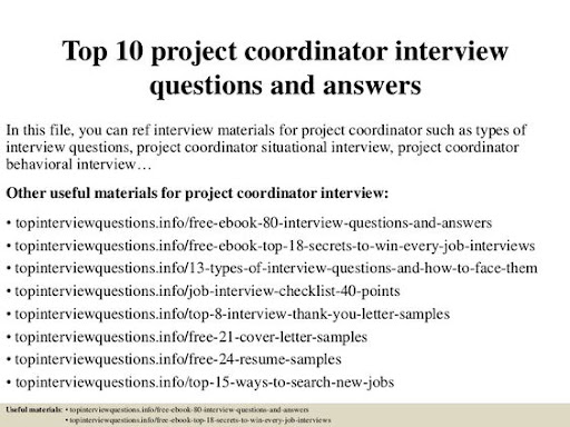 Top 10 Project Coordinator Interview Questions And Answers Interview Questions And Answers Sample Interview Questions Interview Questions